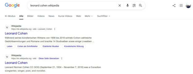 internet“ celebrates its 25th birthday. Was Wikipedia heute am 15. Januar z.B. über Leonard Cohen schreibt: https://de.wikipedia.org/wiki/Leonard_CohenJanuary (dt. und engl.) https://en.wikipedia.org/wiki/Leonard_Cohen