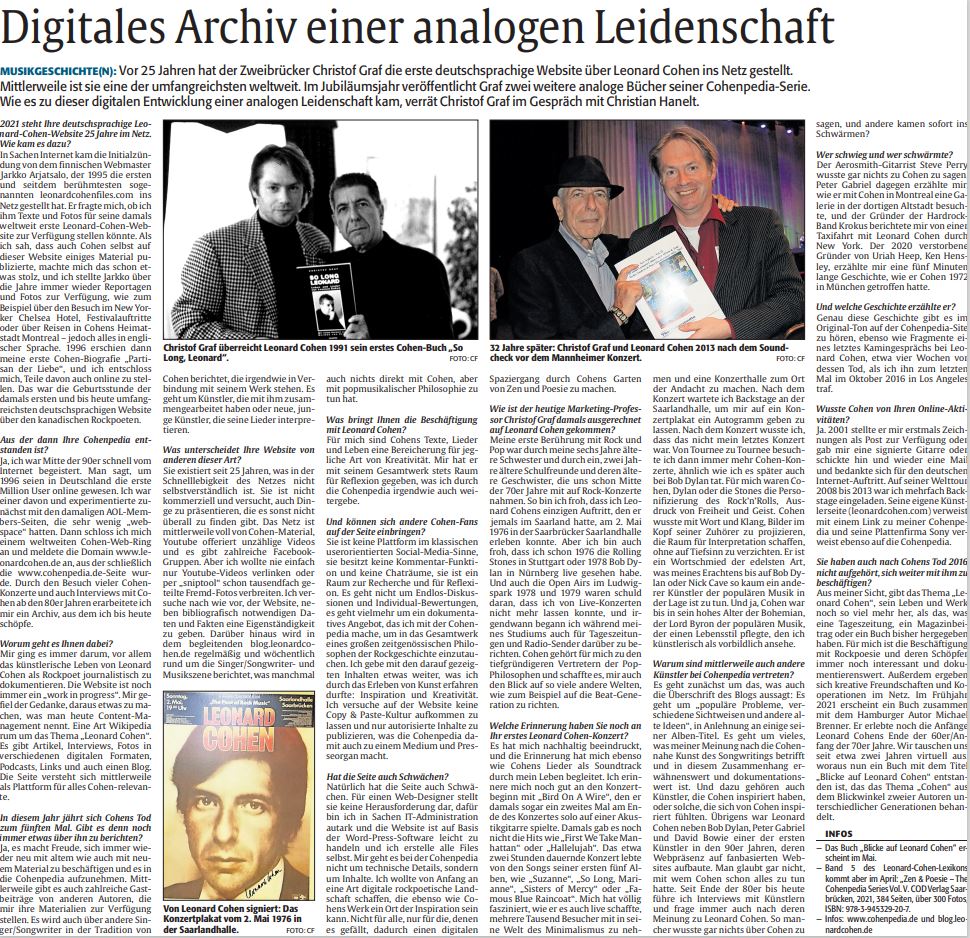 internet“ celebrates its 25th birthday. Was Wikipedia heute am 15. Januar z.B. über Leonard Cohen schreibt: https://de.wikipedia.org/wiki/Leonard_Cohen (dt. und engl.) https://en.wikipedia.org/wiki/Leonard_Cohen