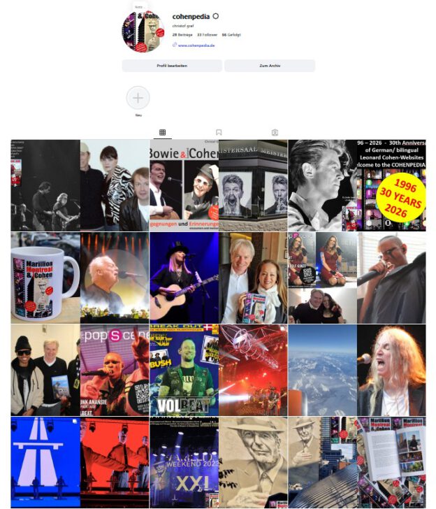 Nicht ultra-aktiv auf INSTA, aber erreichbar: COHENPEDIA